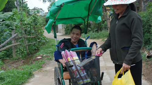 Chính vì không tự ti, Quy đã tự động tìm các bạn khuyết tật để kết bạn. Nghĩ mình là thanh niên không thể ăn bám người cô già nua, Quy suy nghĩ, tìm tòi và vẽ một chiếc xe lăn dành riêng cho mình. Chiếc xe được một người bà con thương tình tài trợ chi phí lắp ráp. Có chiếc xe đó, Quy rong ruổi khắp các ngả đường bán nhang.